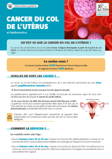 Le cancer du col de l’utérus touche environ 3000 femmes en France chaque année et engendre environ 1000 décès/an.